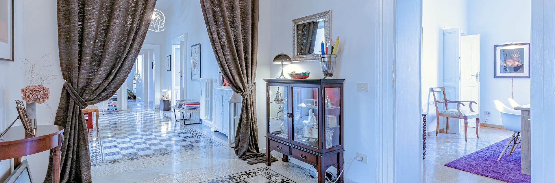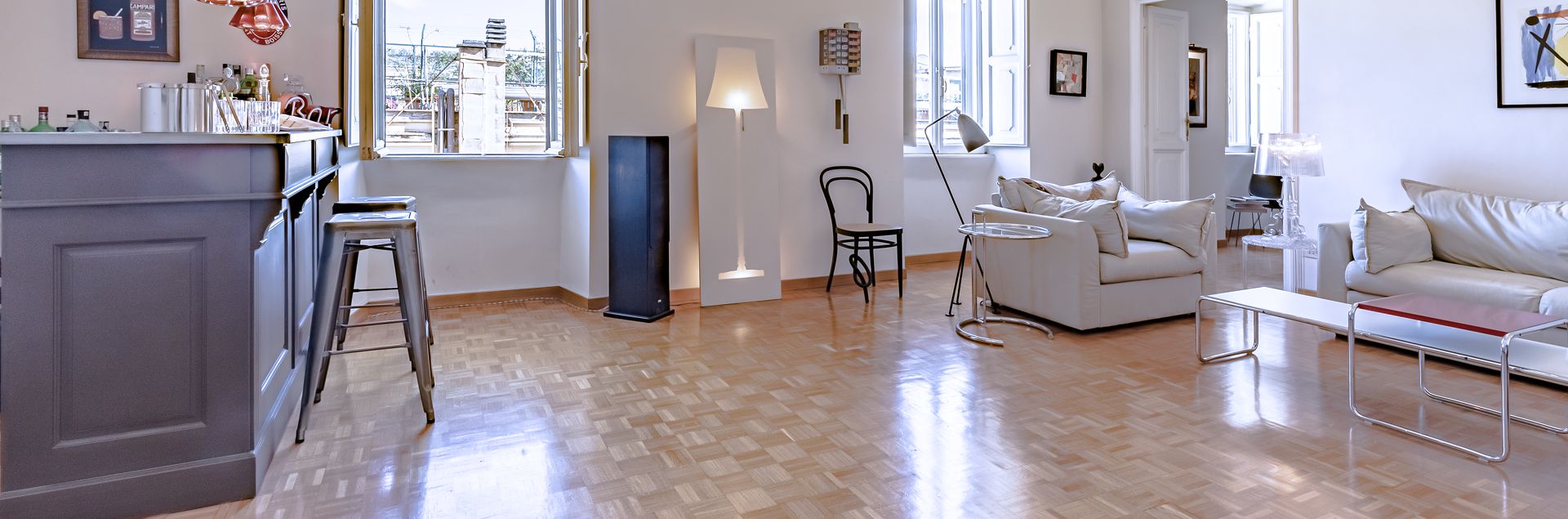 In elegante palazzo d'epoca con servizio di portineria, proponiamo luminoso appartamento finemente ristrutturato ubicato al quinto piano, composto da ingresso, corridoio, salone, sala da pranzo, tre camere, studio, cucina abitabile arredata e doppi servizi. L'appartamento ha il riscaldamento centralizzato ed è dotato di aria condizionata. Non è possibile l'uso ricettivo.